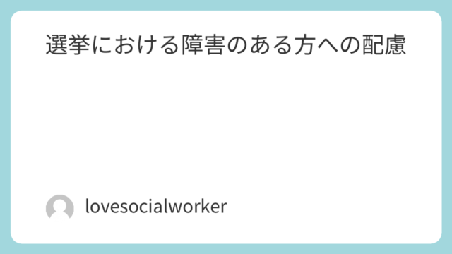 こんにちは。「社会福祉士相談所 LOVE」です。 どうやら、近い内に国政(衆議院議員)選挙が行われるかもしれない様相になってきましたね…。各自治体の選挙管理委員会は、大慌てかもしれないけれど、当事業所代表は、福祉関係者として、「早めにほのめ...