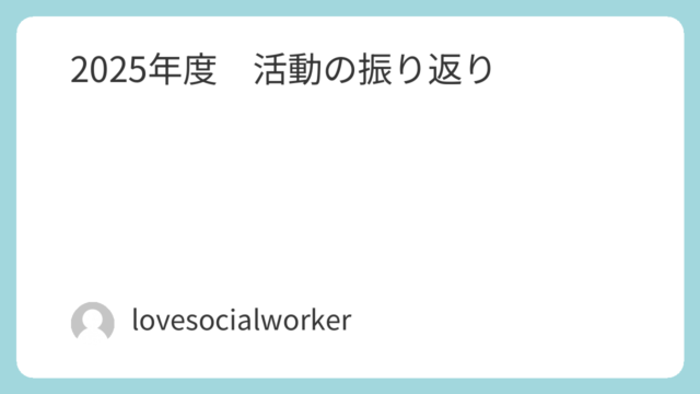 年間の振り返り 2025年度 活動の振り返り こんにちは。「社会福祉士相談所 LOVE」です。 2026年度の初日に、前年度の活動の振り返りを記したいと思います。 昨年度のいちばん大きなトピックとしては、9月と12月に、”『認知症』について~身近な人が認知症になった際に使える制度を中心... 2026.04.01 年間の振り返り