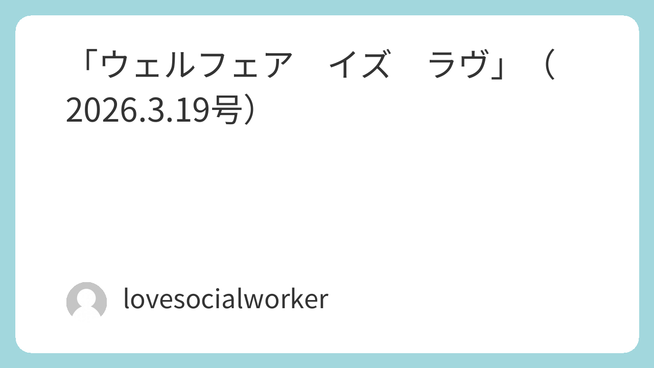 「ウェルフェア イズ ラヴ」(2026.3.19号) ウェルフェア イズ ラヴ💖 X Facebook はてブ LINE Pinterest コピー 2026.03.19 こんにちは。「社会福祉士相談所 LOVE」です。 今週の事業所広報紙をUp致します。 なお、今週号の内容は…。 ○香川県 補聴器購入補助事業新設 ○上手くいくといいな♪ ○赤い羽根・物価高騰下のいのちをつなぐ支え合いキャンペーン ○NPO法人 子育てネットひまわり 様のクラファンチャレンジ となっております。 PDFファイルをダウンロードしてご確認下さいませ💖 2026.3.19ダウンロード