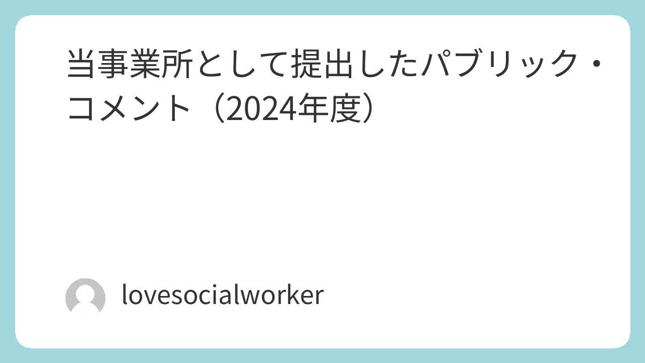 当事業所として提出したパブリック・コメント(2024年度) X Facebook はてブ LINE Pinterest コピー 2026.01.02 2025.2.18提出「高松市こども計画」(案)へのパブリックコメントダウンロード 2025.3.4提出「第2期 香川県社会的養育推進計画」についてのパブリックコメントダウンロード
