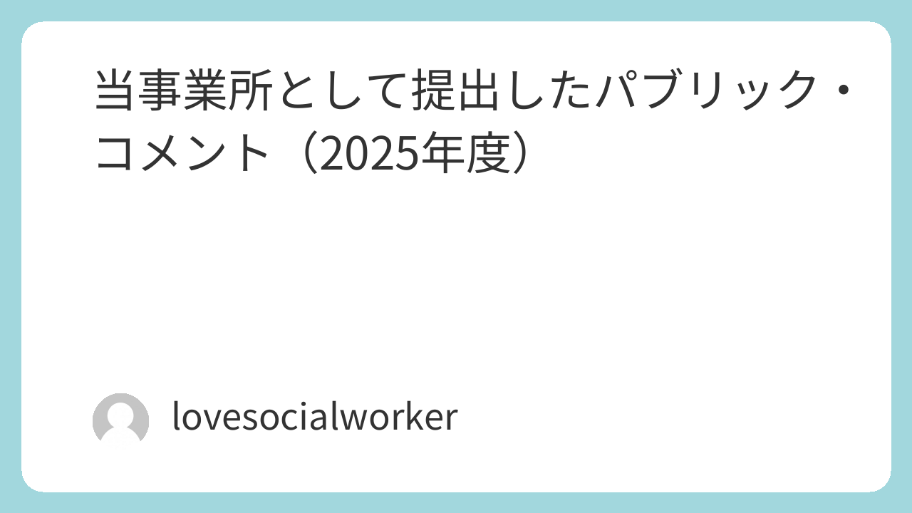 当事業所として提出したパブリック・コメント(2025年度) X Facebook はてブ LINE Pinterest コピー 2026.01.06 2026.1.2提出香川県こども計画(素案)についてのパブリックコメントダウンロード